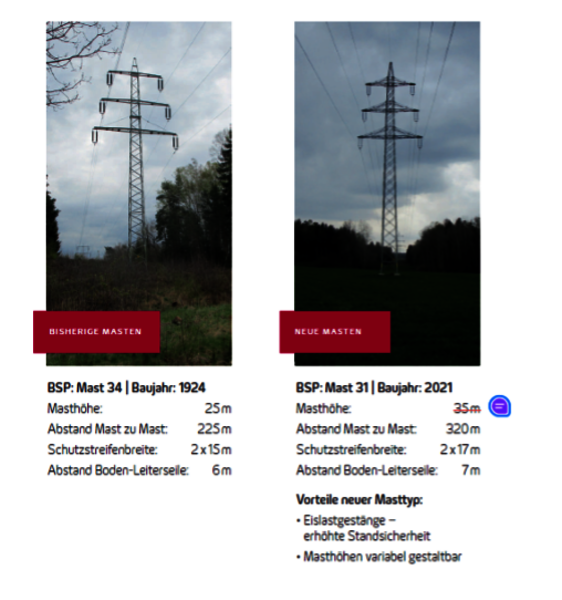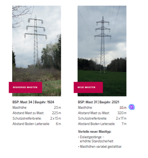 Anlass für die Ertüchtigung der Masten und Leitungen entlang der vorhandenen Stromtrasse sind zum einen die in die Jahre gekommenen Leitungen und Masten und zum anderen der wachsende Bedarf an effizientem und sicherem Strom: